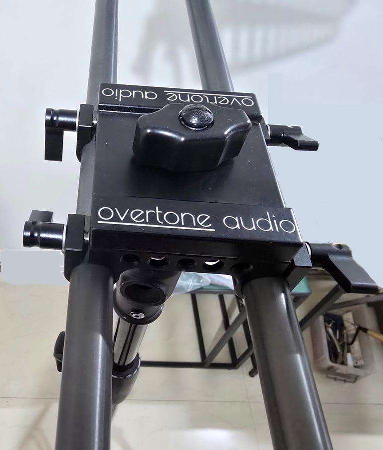 Securely affixes on any 3/8" stud - either a tripod stand or a boom pole