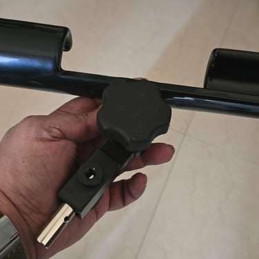 The overall angle of the holder can be adjusted and then locked in place with the round knob.