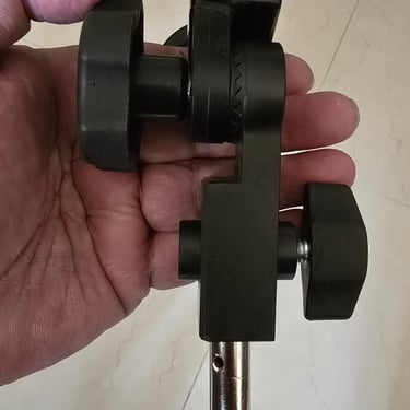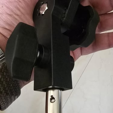 This Boom Pole holder can be mounted on a C-Stand by removing the supplied stud, or into a light stand hole, or it can be mounted on a tripod by using the supplied stud which has a corresponding 5/8" threaded hole on one side. The stud can be secured in place with the key.