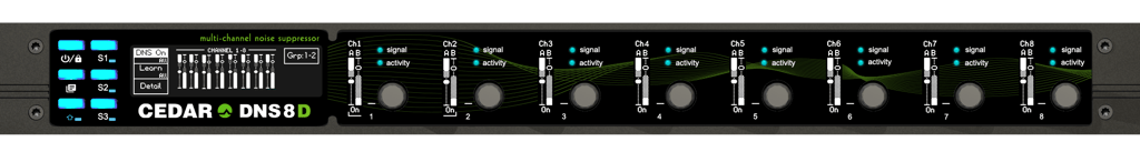 The CEDAR DNS 8D has been designed specifically for broadcast and live sound. With eight channels of noise suppression, it hosts a new algorithm that marries the best of the machine learning and signal processing on which the DNS 8 Live and the DNS 2 dialogue noise suppressors are based. With its slick user-interface that includes standard and detailed modes of operation it offers better control than any previous dialogue noise suppressor, both from the front panel and from almost any web browser that can access its internal remote control software. With its near-zero latency and a standard 4-pin 12VDC input in addition to universal mains power, it's suitable for use in all live situations - not just broadcasting, but also live sound in venues such as theatres, concert halls, conference venues and places of worship.