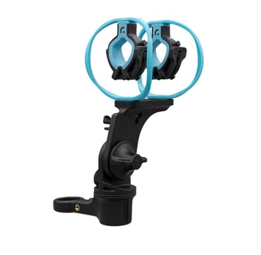 Each mount includes a pair of standard firmness hoops (black) and a pair of softer hoops (light blue) -- so you can get the best isolation for your style of booming. The base of this mount comes with a 360-degree rotatable XLR holder and 3/8 thread to use on boom poles, stands or with quick-connect attachments. All of the components are produced using virtually indestructible thermoplastic elastomers from high-precision injection moulding in an ISO-9000 certified factory (no 3D printing here). The RAD Shock Mounts are made in England.